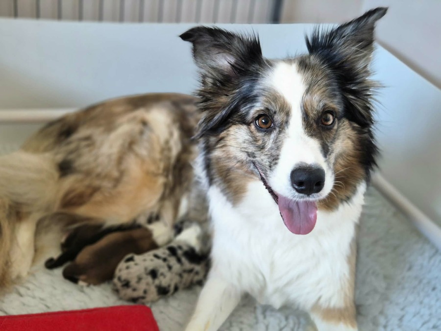 Piper had 3 beautiful puppies early hours of Easter Sunday. She stuck with her pattern of giving birth 5 days early, even with just 3 on board - luckily I was ready for her!