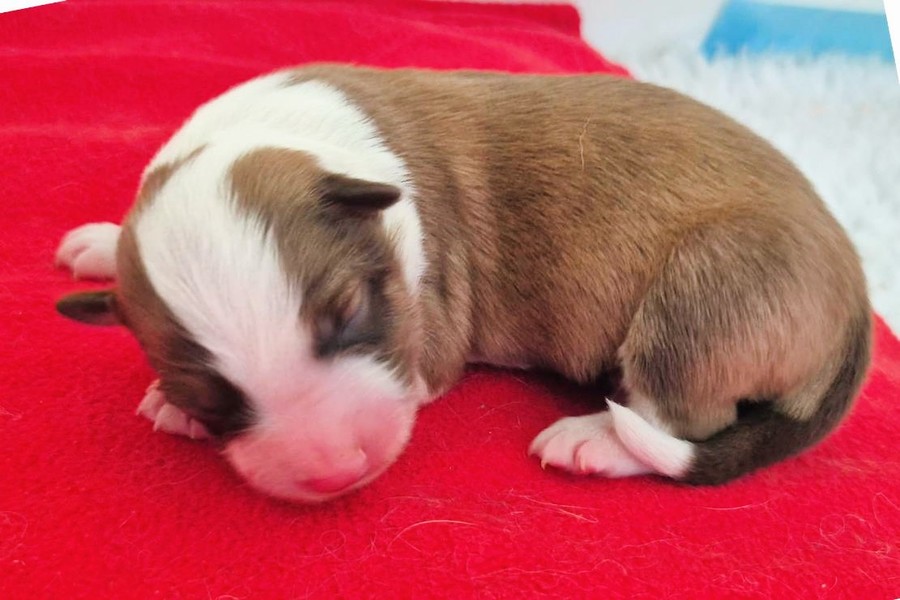 2.25am - chocolate sable - dog - 349g Perfect boy - looking very like his daddy!