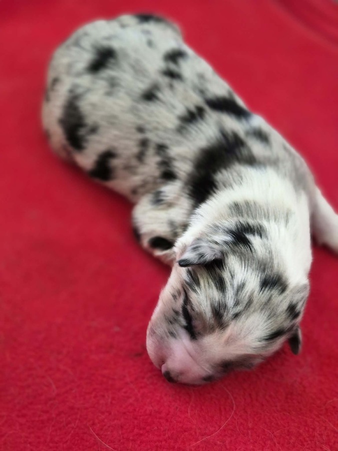 4.10am - Blue Merle Tri - dog - 424g Gorgeous big boy - beautiful markings, lots of dilution spots and his tan is coming out more every day!