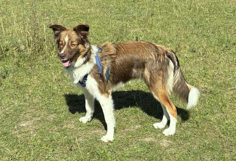 Aviary Good Omen - Chocolate sable boy. Benji lives with Ruth, who has Billy (Tweed x Toby) from us, and so sadly lost Blue last year. Benji is totally adored, and we are so happy to have him retained as a possible future stud dog - we shall see how life turns out! For the moment, its enough to know how treasured he is and I am sure he will love his agility training in due time x
