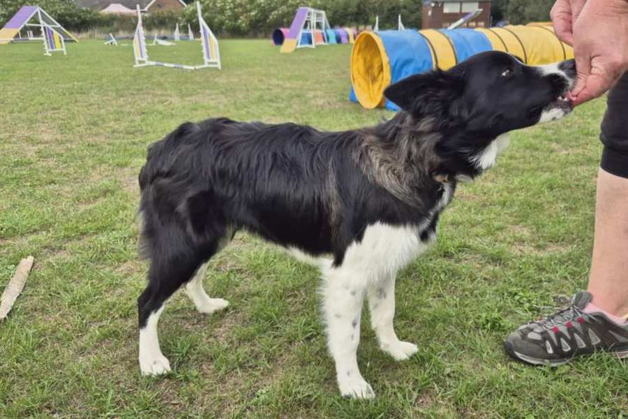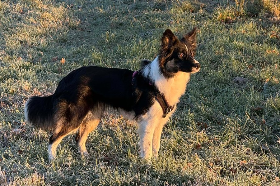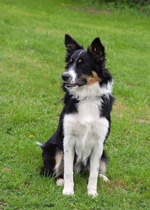 Aviary Catcher of Dreams - Black tri girl. Whisp lives with our friend Deana, who had Gem from our first ever litter. She is having the best life as her 'small holding' dog!